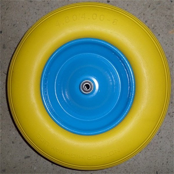 The pu foam wheel adopts foaming molding technology, due to the existence of bubbles, with a light weight, saving material, can absorb the impact load, heat insulation, sound insulation, resistance to high pressure, high wear resistance, especially the ability of organic solution, strong acid and alkali corrosion, suitable for all kinds of commercial small carts and wheelbarrow.